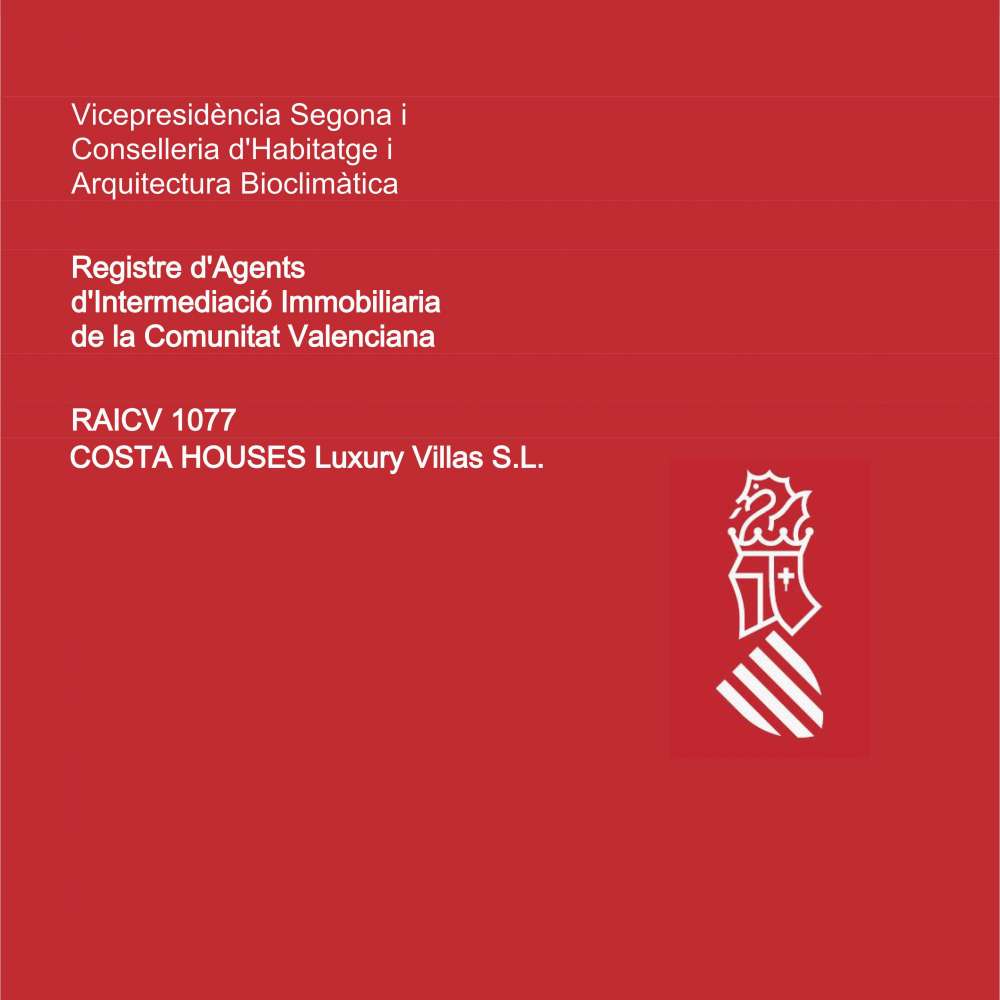 COSTA HOUSES Luxury Villas S.L ® ️ is registered in the mandatory registry for real estate agents in the Valencian Community, with REGISTRATION NUMBER RAICV - 1077, a hallmark of guarantee and security for consumers and the sector itself.